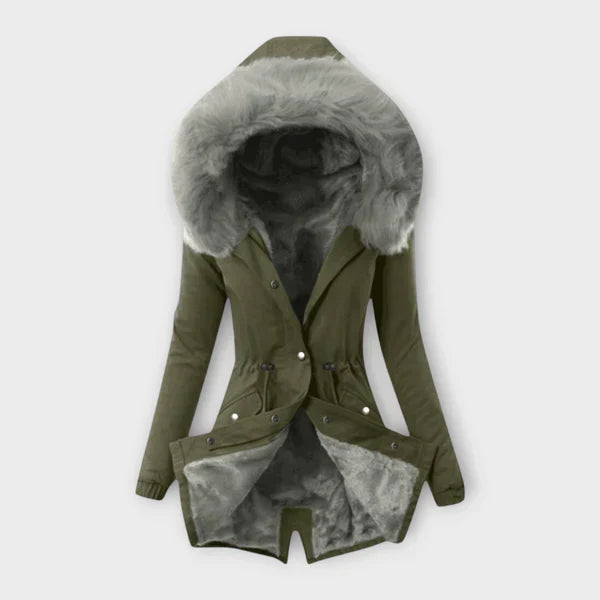 • Elegancki kaptur z futrem (sztuczne futro) dla luksusowego akcentu i dodatkowego ciepła.