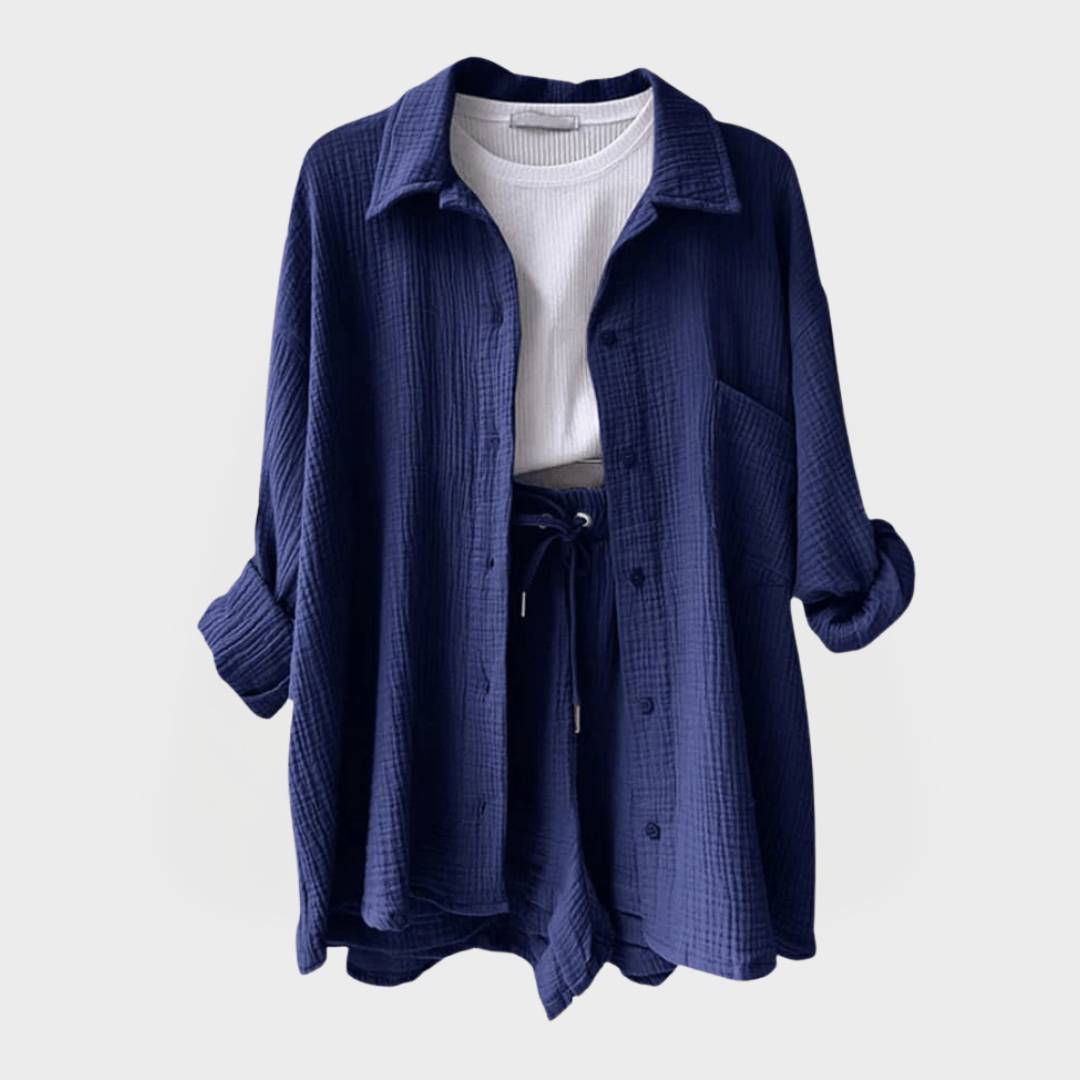 Odkryj wyjątkowy styl i niezrównany komfort w słoneczne dni z naszym Anna™ | Wygodnym letnim zestawem. Stworzony z myślą o modnych kobietach, ten zestaw łączy lekką, przewiewną tkaninę z nowoczesnym designem. Idealny zarówno na relaks przy basenie, jak i na niezobowiązujące spotkania — poczuj się stylowo i pewnie, gdziekolwiek jesteś!