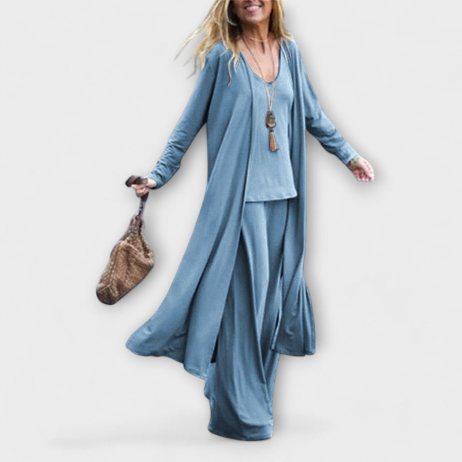 Odkryj nasz nowoczesny, 3-częściowy zestaw, który łączy elegancję z komfortem. Dzięki luźnemu krojowi, idealnie sprawdzi się zarówno w codziennych stylizacjach, jak i na specjalne okazje, gdy chcesz wyglądać sofistycznie i czuć się wygodnie. Stwórz wyjątkowe stylizacje i wyróżnij się w tłumie!